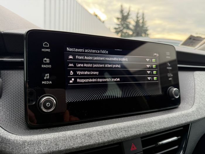 Škoda Kamiq po faceliftu ve výbavě Selection Plus (s černými doplňky) s benzinovým motorem 1.0 TSI o výkonu 85 kW a šestistupňovou manuální převodovkou. Vůz ve velmi dobrém stavu po 1. majiteli, nehavarované a z prodejního programu Itálie. Ve výbavě stojí za zmínku např.: LED hlavní světlomety, LED zadní svítilny, přední a zadní parkovací senzory, Climatronic – automatická klimatizace, multifunkční kožený volant, tempomat + omezovač rychlosti, Front Assist včetně City brzdy, Lane Assist, rozpoznávání dopravních značek, detekce únavy řidiče, SmartLink (Wired & Wireless), Bluetooth + DAB radio, 8 reproduktorů, centrální zamykání Keyless-Go, vyhřívaná zpětná zrcátka s elektrickým nastavením, Sunset – zatmavená zadní okna, JumboBox s loketní opěrkou, bederní opěrky, střešní nosiče v černé barvě, kola z lehké slitiny 17" Propus Aero, bezpečnostní systém eCall+, proaktivní servis ŠKODA Connect, Start-Stop s rekuperací energie a rozšířená ochrana chodců a cyklistů.