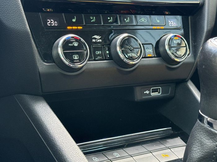 - Ve výbavě stojí za zmínku např.: Full LED přední světlomety s AFS funkcí, TOP LED zadní světla, přední a zadní parkovací senzory se zadní kamerou , příplatková polokožená vyhřívaná sedadla, dvouzónová automatická klimatizace Climatronic, tempomat s omezovačem rychlosti, bezklíčové odemykání a startování KESSY, elektrické ovládání všech oken a zrcátek (sklopná, vyhřívaná, automaticky stmívatelná), multifunkční vyhřívaný kožený volant, navigační systém Amundsen, SmartLink+ (Apple CarPlay, Android Auto), ambientní osvětlení interiéru, Bluetooth handsfree, tažné zařízení s odnímatelnou hlavicí, kola z lehké slitiny 17" TRIUS, chrompaket, tónovaná skla SunSet a vyhřívané trysky ostřikovačů, ESC, XDS+, Front Assist, asistent rozjezdu do kopce, systém kontroly tlaku v pneumatikách a 6 airbagů.