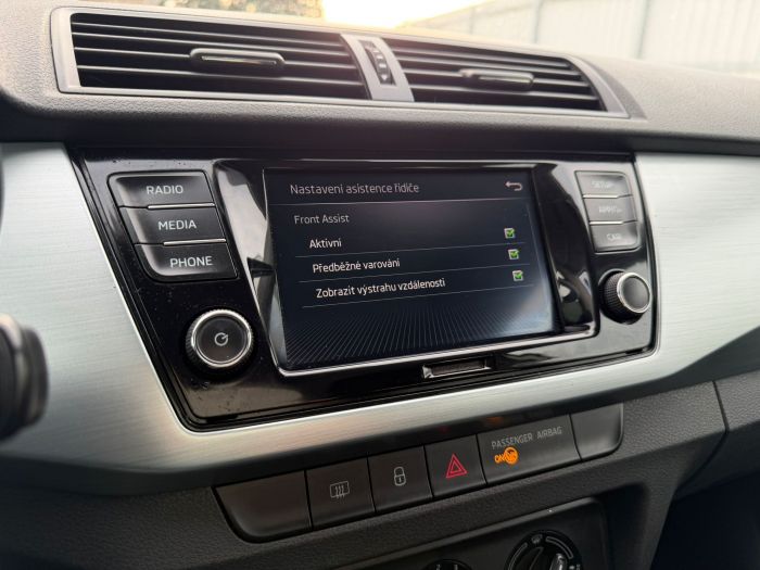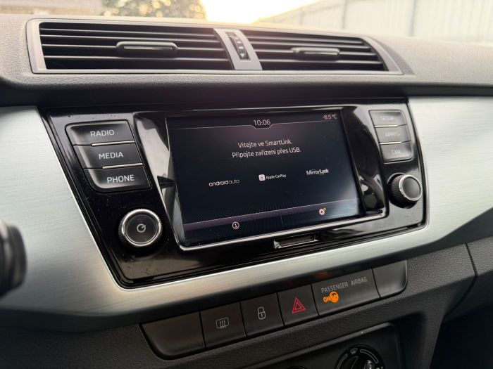 Škoda Fabia Combi Ambition s motorizací 1.0 TSI 70 kW a pětistupňovou manuální převodovkou. České vozidlo po 1. majiteli v perfektním stavu s pravidelným servisem z autorizovaných poboček Škoda. Nehavarované. Ve výbavě stojí za zmínku např.: manuální klimatizace, multifunkční volant, tempomat se Speed Limiterem, parkovací senzory vzadu, Front Assist, rádio Swing s DAB, SmartLink+, Bluetooth, Maxi DOT, litá kola Cygnus 15"