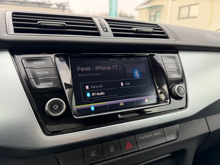 Škoda Fabia Combi Ambition s motorizací 1.0 TSI 70 kW a pětistupňovou manuální převodovkou. České vozidlo po 1. majiteli v perfektním stavu s pravidelným servisem z autorizovaných poboček Škoda. Nehavarované. Ve výbavě stojí za zmínku např.: manuální klimatizace, multifunkční volant, tempomat se Speed Limiterem, parkovací senzory vzadu, Front Assist, rádio Swing s DAB, SmartLink+, Bluetooth, Maxi DOT, litá kola Cygnus 15"