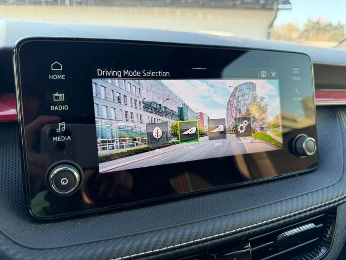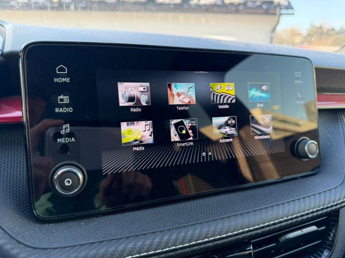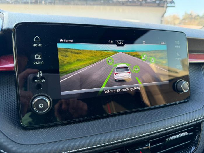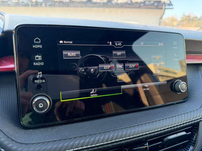 - Ve výbavě stojí za zmínku např.: panoramatická skleněná střecha, sportovní multifunkční kožený volant s vyhříváním a řazením pod volantem, sportovní komfortní sedadla s vyhříváním, bezklíčové odemykání a startování KESSY, parkovací senzory vpředu i vzadu, zadní parkovací kamera, digitální přístrojový štít, LED hlavní světlomety s variabilním rozložením světla a asistentem dálkových světel, ambientní osvětlení interiéru, Smartlink pro bezdrátové propojení telefonu, automatická dvouzónová klimatizace Climatronic, volba jízdního profilu, asistent udržování jízdního pruhu, rozpoznávání dopravních značek, dešťový a světelný senzor a černá 16palcová kola z lehké slitiny Proxima.