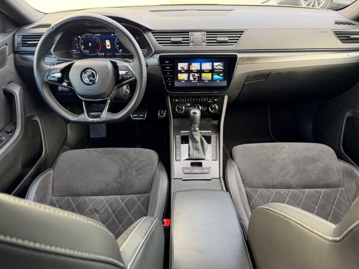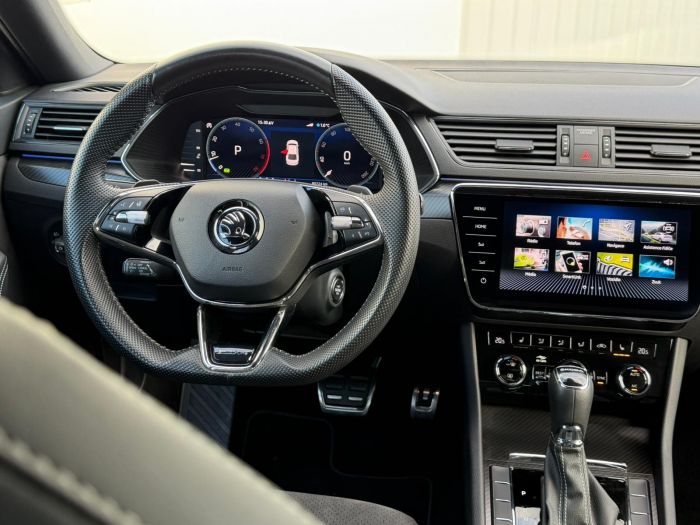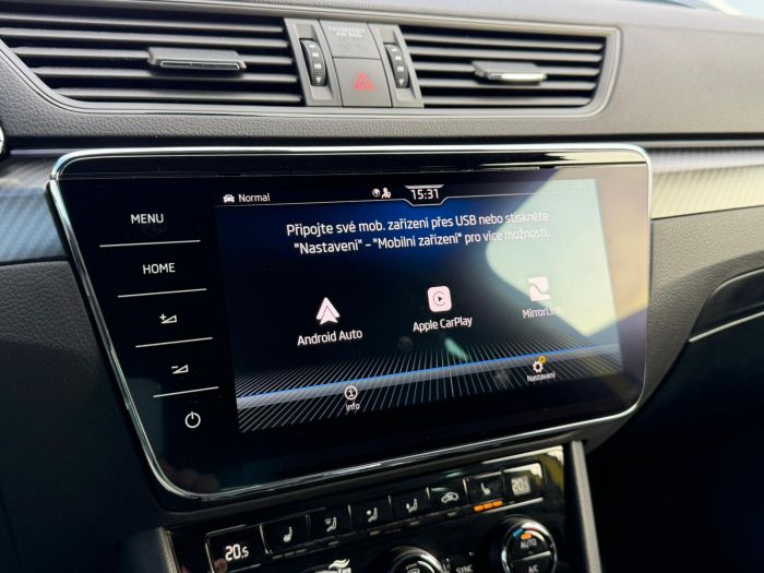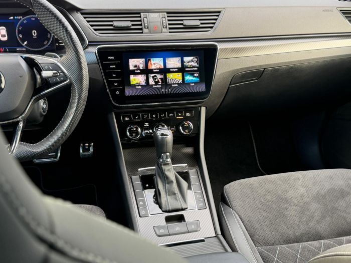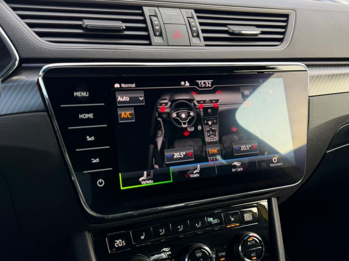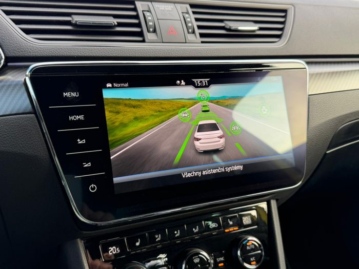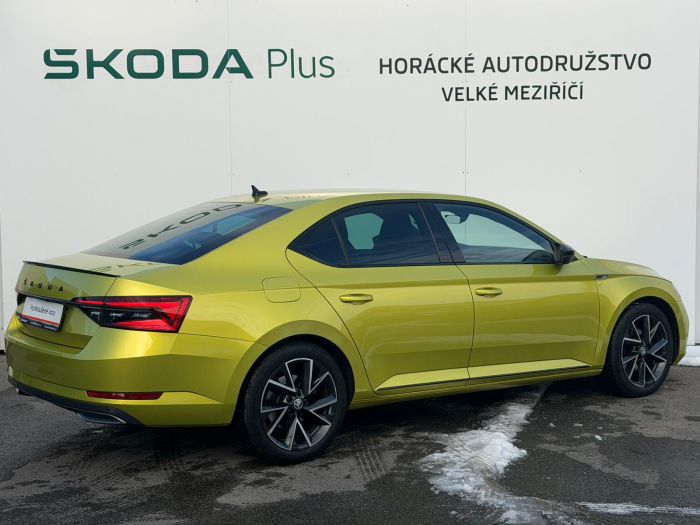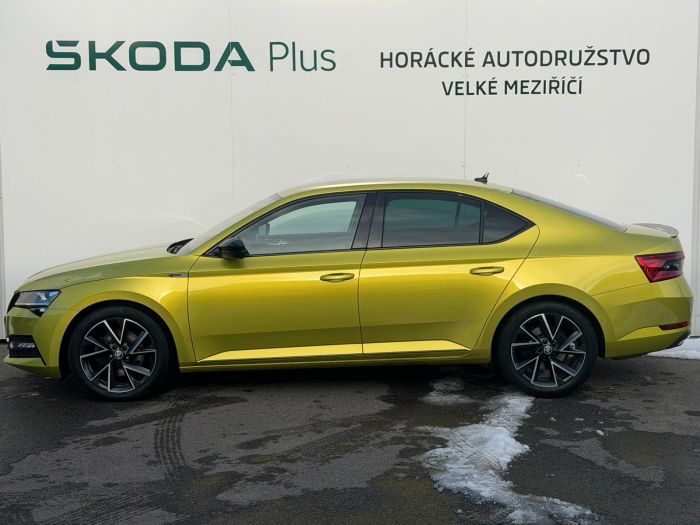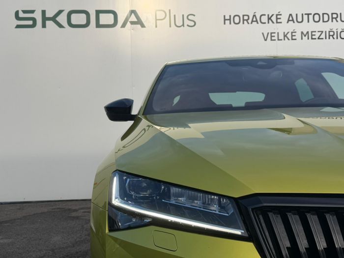 Škoda Superb ve výbavě SportLine s benzínovým motorem 1.5 TSI a výkonem 110 kW s automatickou sedmistupňovou převodovkou DSG. České vozidlo po 1. majiteli s pravidelným servisem z autorizovaného servisu Škoda. Nehavarované, ve výborném technickém stavu. Tento atraktivní liftback v nepřehlédnutelném speciálním lakování Dragon Skin kombinuje sportovní styl s moderní technikou a maximálním komfortem. Vůz disponuje sportovním podvozkem a progresivním řízením pro dynamický jízdní zážitek, zatímco interiér v provedení Sportline s černým stropem a ambientním osvětlením vytváří prémiovou atmosféru. Vozidlo je vybaveno špičkovými technologiemi, jako jsou Matrix-LED světlomety a navigace Columbus, a díky pravidelné péči v autorizované síti je v perfektní kondici. Ve výbavě stojí za zmínku např.: Matrix-LED hlavní světlomety s funkcí Welcome efektu a animovanými ukazateli směru, virtuální kokpit, navigace Columbus s 9,2palcovým displejem, sportovní komfortní sedadla s potahy v kombinaci kůže a Alcantary, elektricky nastavitelné sedadlo řidiče s pamětí, vyhřívání předních i zadních sedadel, třízónová automatická klimatizace Climatronic, sportovní kožený multifunkční volant s pádly pro řazení a vyhříváním, bezklíčové odemykání a startování KESSY Full, virtuální pedál pro bezdotykové otevírání víka zavazadlového prostoru, adaptivní tempomat, zadní parkovací kamera a senzory vpředu i vzadu s funkcí brzdění Manoeuvre Assist, volba jízdního profilu, bezdrátový Smart Link pro Apple CarPlay, bezdrátové nabíjení telefonu, akustická přední skla se zatmavením Sunset, progresivní řízení, hliníkové pedály, USB konektor u vnitřního zpětného zrcátka a 18palcová kola z lehké slitiny Vela s Aero kryty.