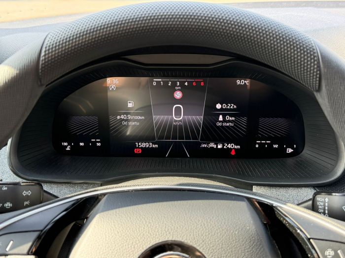 - Ve výbavě stojí za zmínku např.: LED hlavní světlomety, možnost aktivace Smartlink, digitální přístrojový panel, infotainment s digitálním radiopříjmem DAB a 2x USB-C slotem, vyhřívání předních sedadel, tempomat s omezovačem rychlosti, bezklíčové startování Keyless-Go, mechanicky sklopné tažné zařízení, kola z lehké slitiny Cortadero 16", parkovací senzory vzadu, Lane Assist, Front Assist s nouzovým brzděním, rozpoznávání dopravních značek, detekce únavy řidiče, manuální klimatizace, multifunkční volant, elektrické ovládání oken vpředu i vzadu, asistent rozjezdu do kopce, dešťový a světelný senzor, vnitřní zpětné zrcátko se zatmavováním a deštník ve dveřích řidiče.
