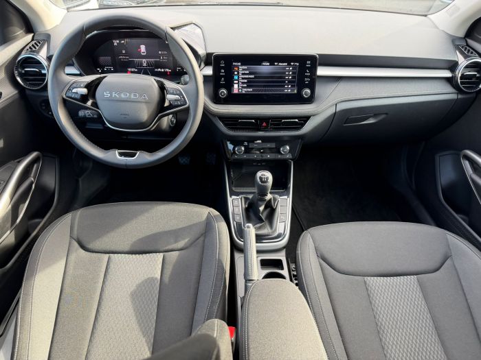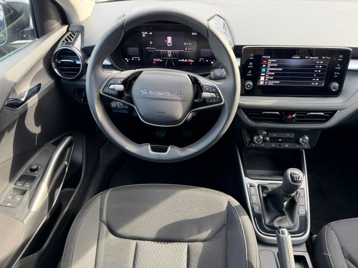 - Škoda Fabia Selection 1,0 TSI 70 kW, 5stupňová manuální převodovka, modelový rok 2025, do provozu 31. 1. 2025, barva Černá Magic s perleťovým efektem.