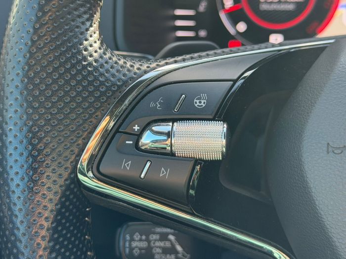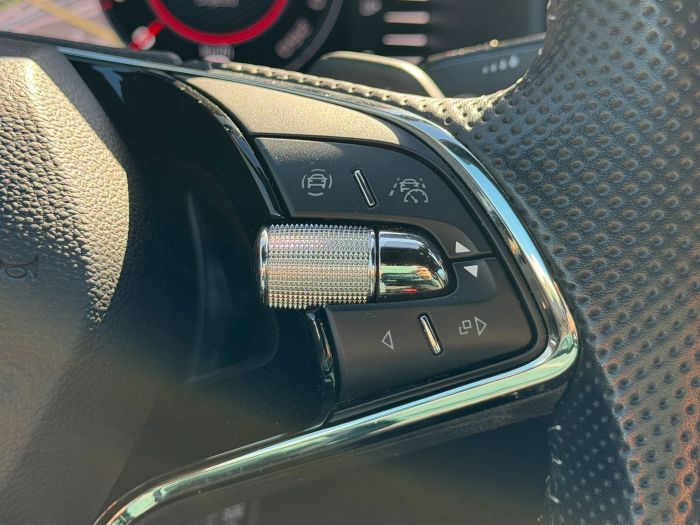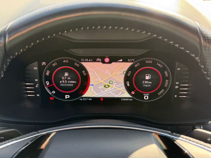 - Ve výbavě stojí za zmínku např.: LED hlavní světlomety se světlem pro jízdu do zatáčky a funkcí Auto Light Assist pro automatické přepínání dálkových světel, virtuální kokpit, navigační systém Amundsen s online službami na 3 roky, bezdrátový Smart Link pro Apple CarPlay, adaptivní tempomat s omezovačem rychlosti, asistent hlídání mrtvého úhlu Side Assist, Front Assist s funkcí nouzového brzdění, asistent rozpoznání únavy a dopravních značek, bezklíčové odemykání a startování Kessy Full, virtuální pedál pro bezdotykové otevírání víka zavazadelníku, parkovací kamera s předními a zadními senzory, tříramenný sportovní vyhřívaný multifunkční kožený volant s pádly pro řazení DSG, sportovní komfortní sedadla s vyhříváním vpředu i vzadu, vyhřívané čelní sklo, dvouzónová automatická klimatizace Climatronic, volba jízdního profilu, vnitřní ambientní osvětlení, zatmavená zadní skla Sunset, mechanicky sklopné a elektricky odjistitelné tažné zařízení, zásuvka na 230 V, bezdrátové nabíjení telefonu a 19" kola z lehké slitiny.