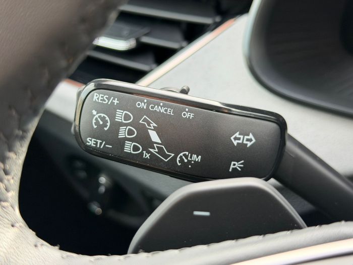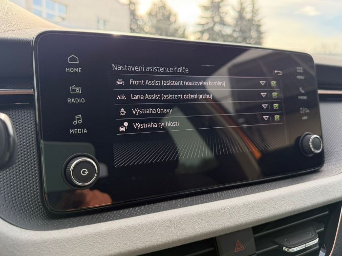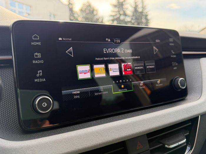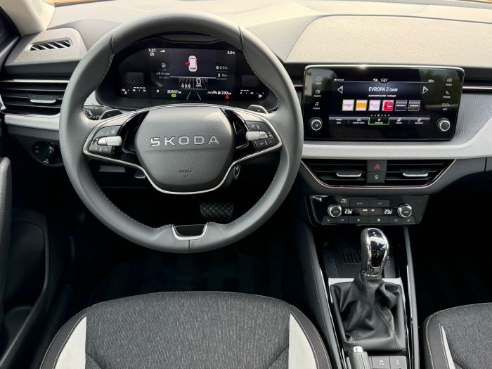 - Ve výbavě stojí za zmínku např.: LED hlavní světlomety s funkcí automatického zapínání a denním svícením, zadní LED svítilny s animovaným ukazatelem směru, parkovací senzory vpředu i vzadu doplněné o zadní parkovací kameru, tempomat s omezovačem rychlosti, automatická dvouzónová klimatizace Climatronic, vyhřívání předních sedadel, vyhřívaný multifunkční kožený volant s řazením pod volantem, volba jízdního režimu Drive Mode Select, bezklíčové zamykání a startování Keyless-Entry, vnitřní zpětné zrcátko s automatickým zatmavováním, vnější zpětná zrcátka elektricky sklopná a vyhřívaná, infotainment s digitálním radiopříjmem DAB a bezdrátovou funkcí Smart Link, Bluetooth s bezdrátovým dobíjením telefonu, digitální přístrojový štítek Basic, ambientní osvětlení interiéru, asistent udržování jízdního pruhu Lane Assist, Front Assist s funkcí nouzového brzdění, rozpoznávání dopravních značek, detekce únavy řidiče, asistent rozjezdu do kopce, dešťový a světelný senzor, Sunset (zatmavená zadní okna), chromové podokenní lišty, stříbrný střešní nosič a 17" kola z lehké slitiny Stratos.