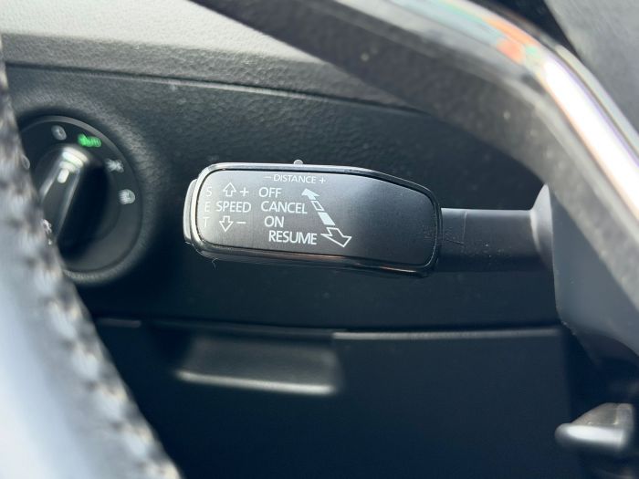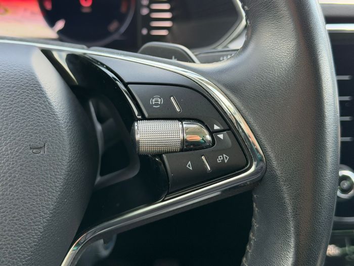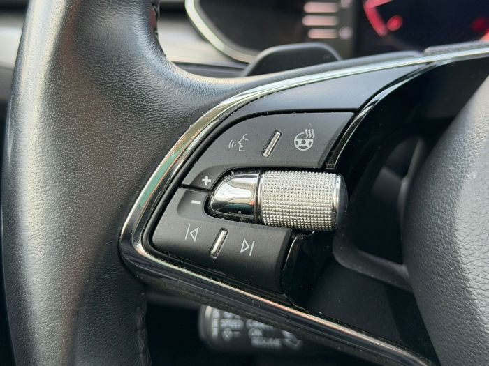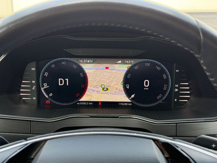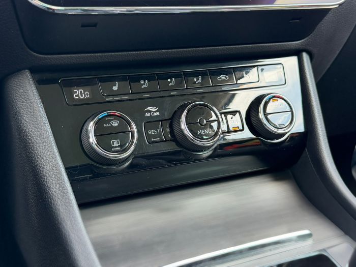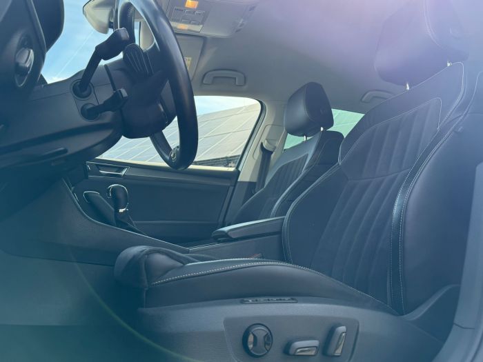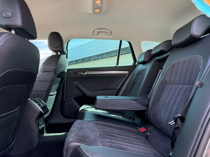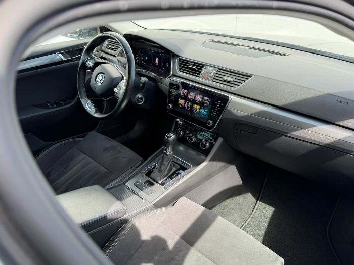 - Ve výbavě stojí za zmínku např.: LED světlomety s funkcí Light Assist a ostřikovači, TOP LED zadní svítilny, adaptivní tempomat, navigace Amundsen s 8" displejem, bezdrátový SmartLink, DAB, třízónová klimatizace, vyhřívání předních sedadel, elektricky nastavitelné sedadlo řidiče s pamětí, potahy sedadel Alcantara, komfortní sedadla vpředu, multifunkční kožený volant s vyhříváním a pádly pro řazení DSG, bezklíčové zamykání a startování KESSY Full, parkovací senzory vpředu i vzadu, zadní parkovací kamera, virtuální pedál pro elektrické otevírání pátých dveří, akustická přední boční skla se zatmavením SunSet, elektricky sklopné tažné zařízení, volba jízdního režimu, Front Assist, asistent rozjezdu do kopce, systém Crew Protect Assist, rozpoznání únavy řidiče, 18" kola z lehké slitiny Vela s Aero kryty.